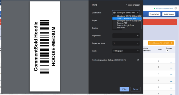 When you’re ready to print, simply select the Dymo printer from your print menu and click "Print."