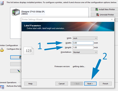 - Set the Label Parameters to the Width and Height of your loaded labels and click "Next."