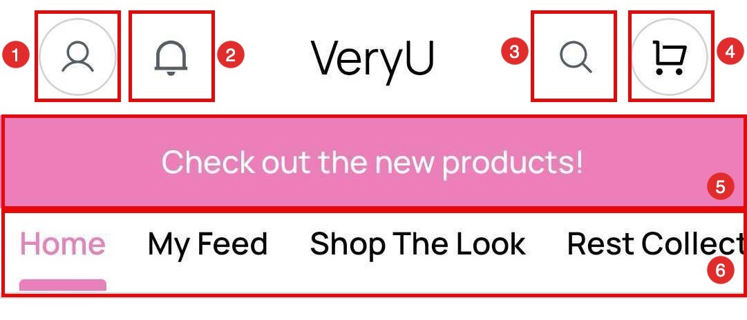 - Home: Returns you to the Home Screen, where you can browse featured products, collections, and promotional content.