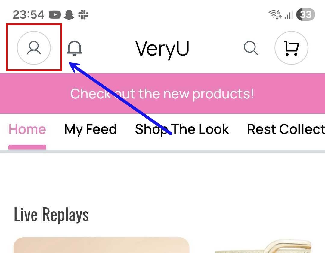 Tap Profile icon at the top right corner of the home page to access your account.