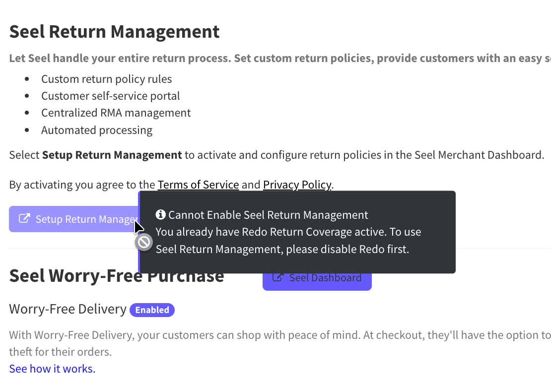 - If you see the Enabled tag on the Seel Returns Management page, you are eligible.