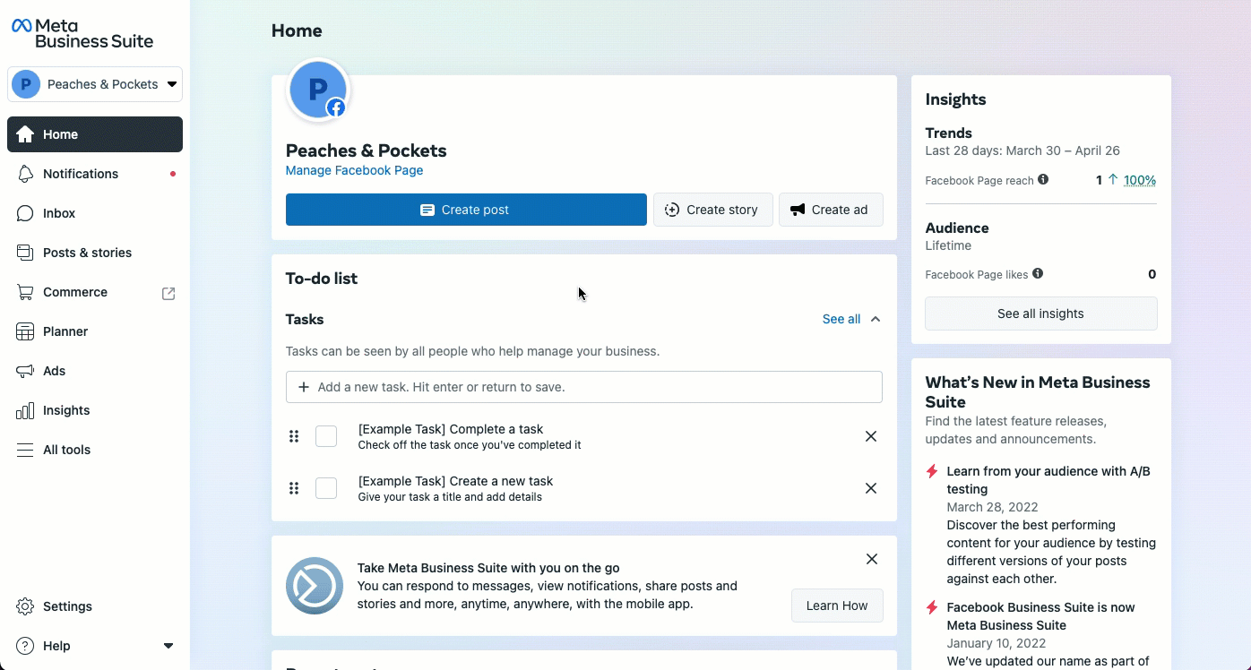 - You can confirm your page is connected by selecting the Connected Assets tab.