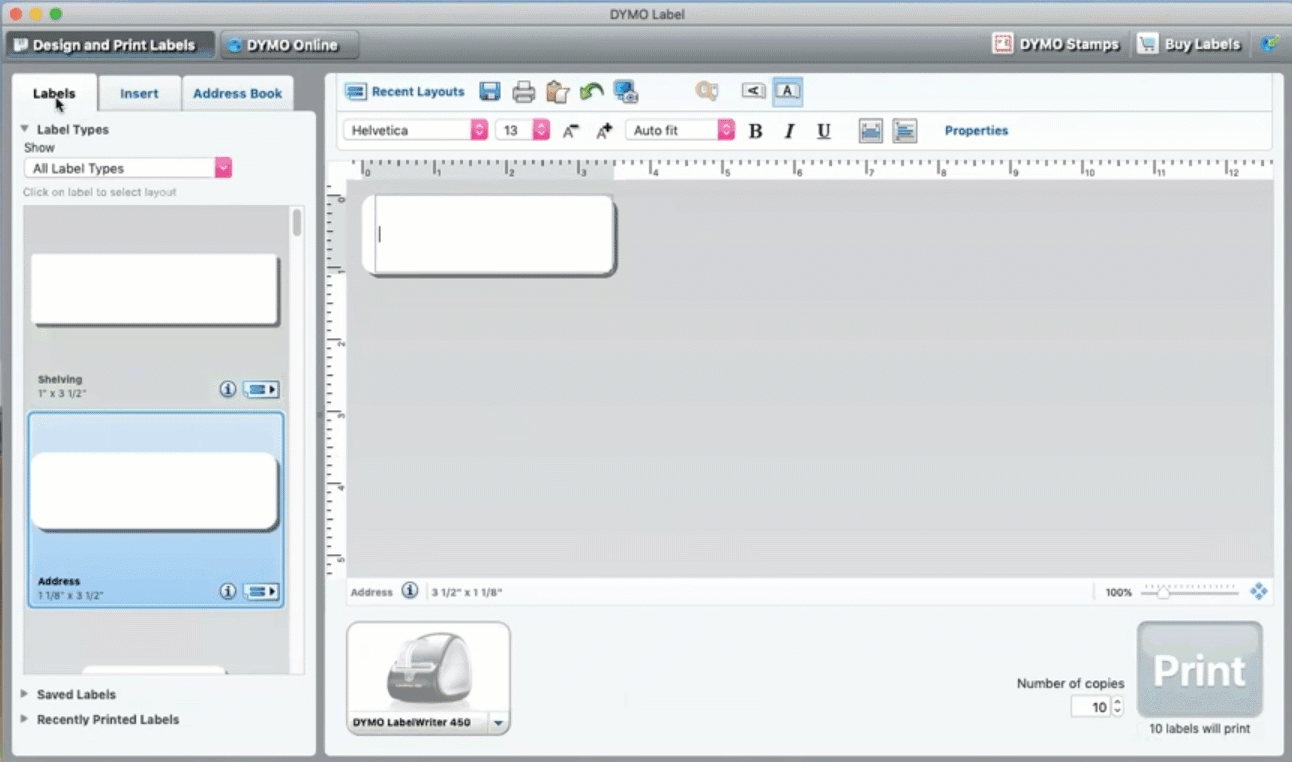 When you are ready to print labels, adjust your Number of Copies field and select Print.