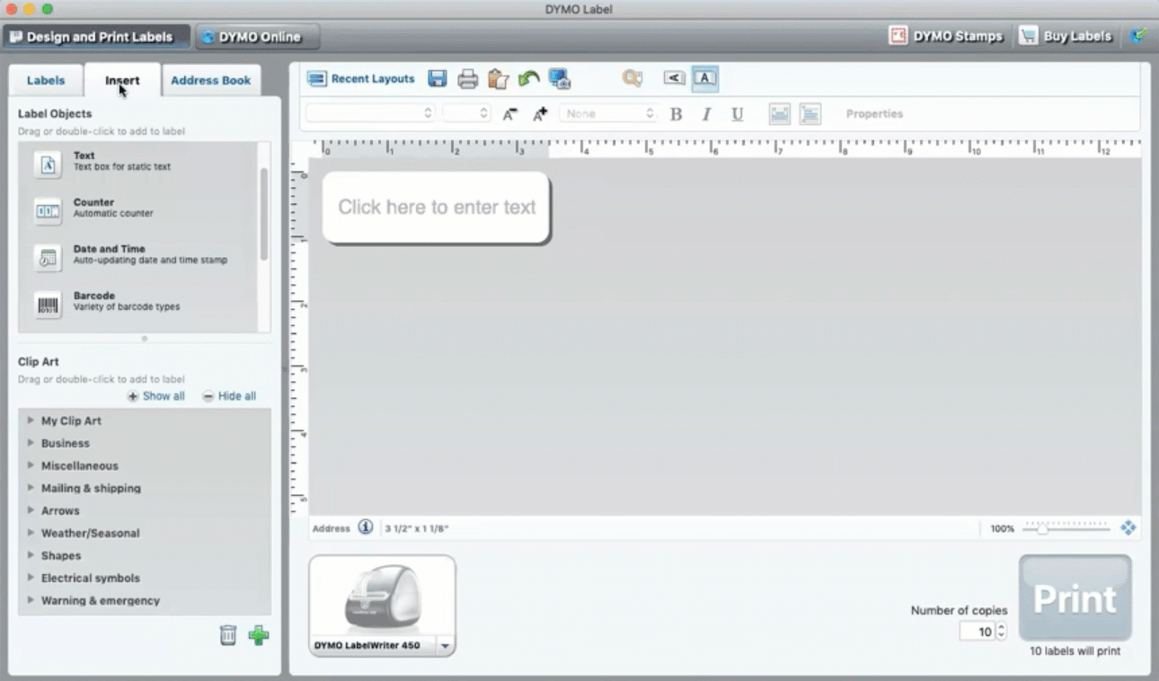 - From the Insert tab, locate the Label Objects on the left side of the window.