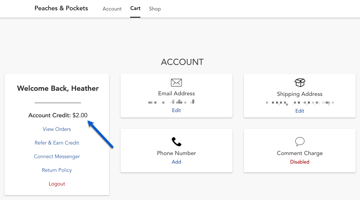 - From their account page, a registered shopper can confirm the amount of account credit available to them.