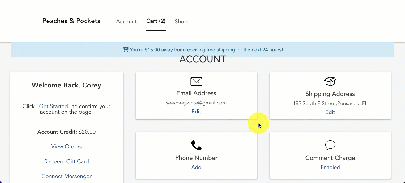 With CommentSold, you can set up a loyalty program for your shop and award registered shoppers with account credit that they can use on future purchases with your shop. The amount a shopper receives will always be a set percentage of a purchase's subtotal. As a shop, you can set this percentage.