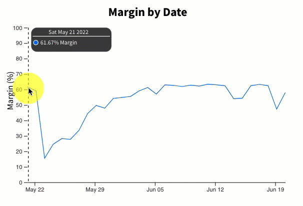 View a breakdown of your margins by date. You can move your mouse along the graph to view the specific date and percentage.