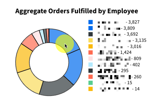 View a breakdown of total orders fulfilled by each employee for your defined date range. Employee names appear to the left of their total and each employee has an assigned color so you can easily locate that employee in the graph.