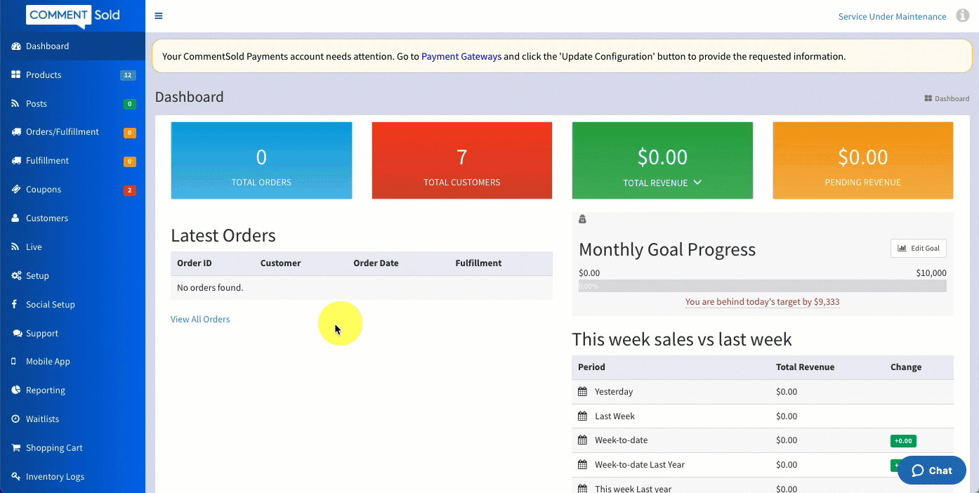 - Select Reporting in the side menu of your CommentSold dashboard.