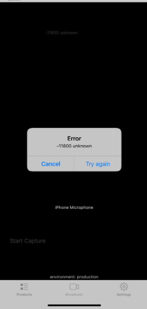 - Cause of Error: The previous live stream wasn’t ended in the correct order on each device.