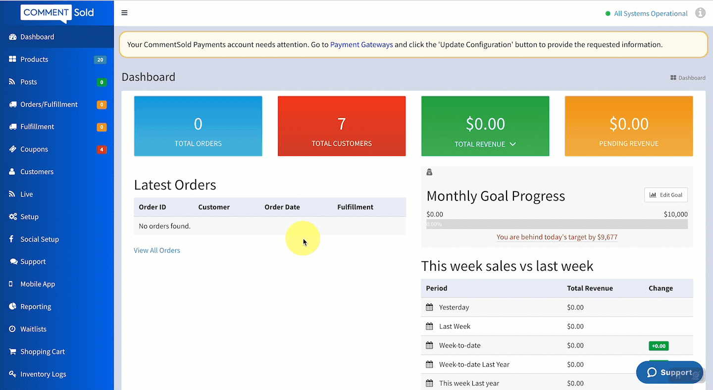 - Select Reporting in the side menu of your CommentSold dashboard.