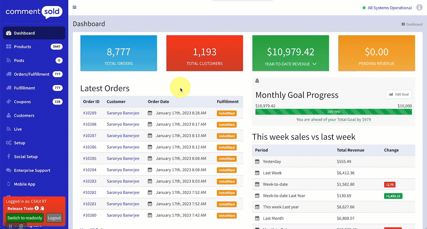 - Select CommentSold Payments from the options listed at the top of the page.
